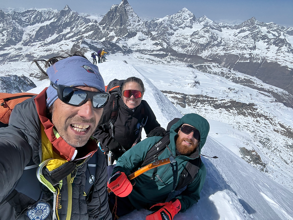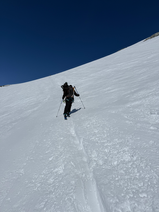 Le condizioni di oggi della salita sono buone anche se cominciano a vedersi qualche buco anche piccolo nel ghiacciaio, e quindi bisogna comunque prestare attenzione. Per Alessia e Alex ottimo inizio e primo 4000. Giornata non molto calda a causa del vento che a tratti dava veramente fastidio. Complimenti ad Alessia che ha passeggiato la gita e padroneggiato la tecnica di salita dello sci alpinismo (ma gli sci sono il suo mestiere e si vede), poichè ha festeggiato così il suo diploma di Maestra di Sci preso il giorno prima della salita. Complimenti anche ad Alex che nonostante il suo poco allenamento non ha mail mollato. Nonostante il vento e le gambe affaticate la sua testa e il suo fisico ha tenuto botta e conquistato anche lui il suo primo 4000.