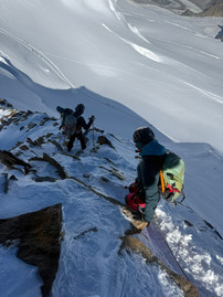 Venerdi verso le 16 ci siamo incontrati a Indren alla stazione di arrivo della funivia, poichè il nostro gruppo era formato da persone provenienti da regioni e nazioni differenti. Da qui siamo poi saliti al Rifugio Mantova per pernottare la notte. Il mattino seguente sveglia alle 4, e dopo la colazione e alle 4,30 siamo pronti per la nostra salita. la meta iniziale era salire la Zumstein. Il tempo fuori è bellissimo. Partiamo e appena giunti all'altezza del rifugio Gnifetti il freddo è pungente. Dobbiamo coprirci, tanto che anche il vento non forte ma costante ci accompagnerà per tutta la salita. Stringiamo i denti e continuiamo a salire , prima fino al colle Vincent, dove ci concediamo una brevissima pausa. Il freddo continua a farsi sentire e il vento non molla e ci costringe a ripartire per non raffreddarci troppo. Oramai sono le 6.40 e il sole qui non è ancora arrivato. Proseguiamo per un altra ora fino a giungere al colle del Lys dove compare un pò d sole che ci riscalda. Qui decidiamo di fare una pausa un pò più lunga, anche se stentiamo a riscaldarci. Certo il sole ci aiuta un pochino e quindi ne approffittiamo per allungare la nostra pausa nonostante il vento continua a tenere basse le temperature. Ci consultiamo per capire lo stato di affaticamento e guardiamo da lontano la nostra meta, la Zumstein. Non manca molto circa un'ora e mezza di salita. Ma qualcuno di noi ha le gambe un pò più stanche. Decidiamo così di salire la Punta Parrot, che rimane più vicina e un centocinquanta metri di dislivello più bassa. Alla fine la scelta è per tutti condivisa e siamo tutti felici per questa cavalcata in cresta su questa splendida cima che come già ampiamente descritto nell'introduzione ci regala un panorama favoloso. Così che portiamo a casa una bela salita di soddisfazione e una giornata fredda , ma riscaldata dalle emozioni che questa salita ci ha regalato.